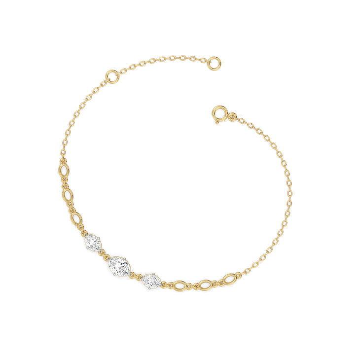 We pair all our gold with lab-grown diamonds in 14K gold bracelets. These stones offer brilliant fire and clarity—while being responsibly sourced and eco-friendly. Choose from lab-grown diamond tennis bracelets in 14K gold, lab-grown diamond charm bangle bracelets, or sustainable lab-grown diamond chain bracelets for ethical luxury that effortlessly elevates every look.