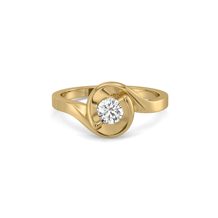 A soft swirl pattern in gold with a round diamond on top. This ring looks artistic and modern at the same time.