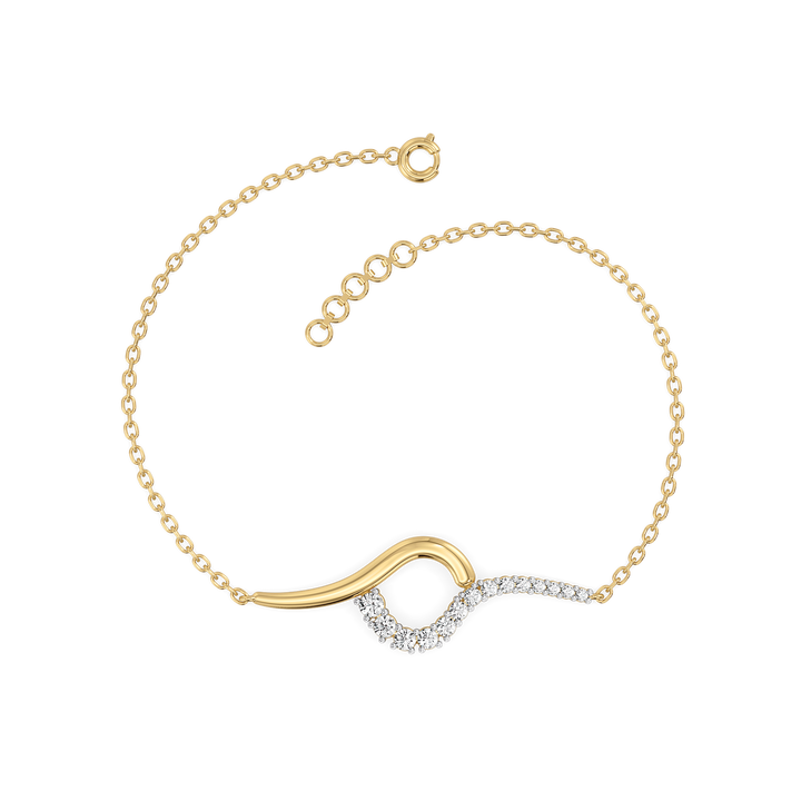 This is a very cute and feminine design with a bow-like pattern in the centre. Made in 18K Vermeil gold, this lab created diamond bracelet is so comfortable for long hours, no doubt.