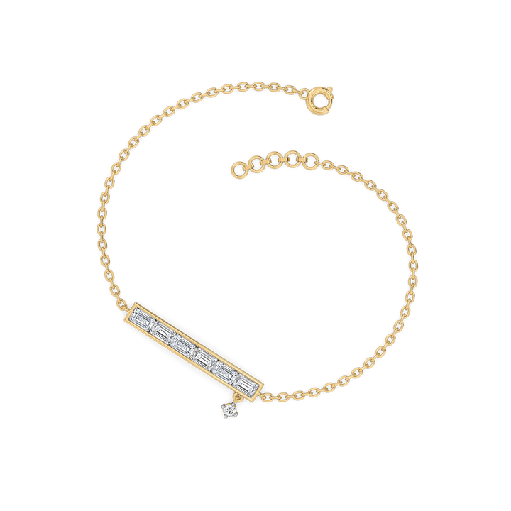 This bracelet’s design is pretty classy. The baguette-cut lab diamonds are lined neatly on a gold chain. You can wear this kind of bracelet with every dress.