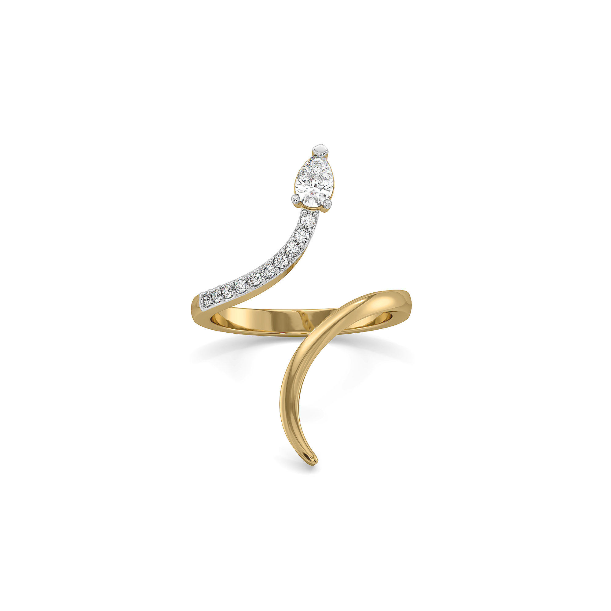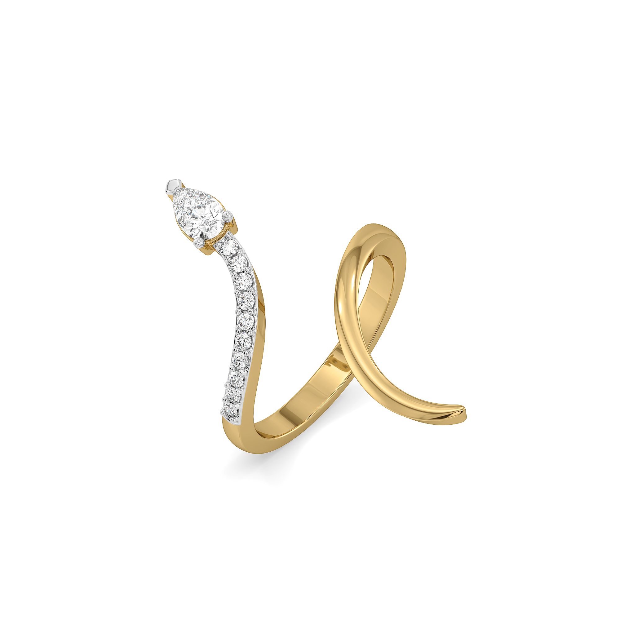 The Pear Flair Ring celebrates flow and form. Two open ends curve together, framing pear-cut lab-grown diamonds in 18K gold vermeil that catch the light with every turn. The design moves with fluidity, capturing elegance in motion — effortless, luminous, and endlessly captivating.