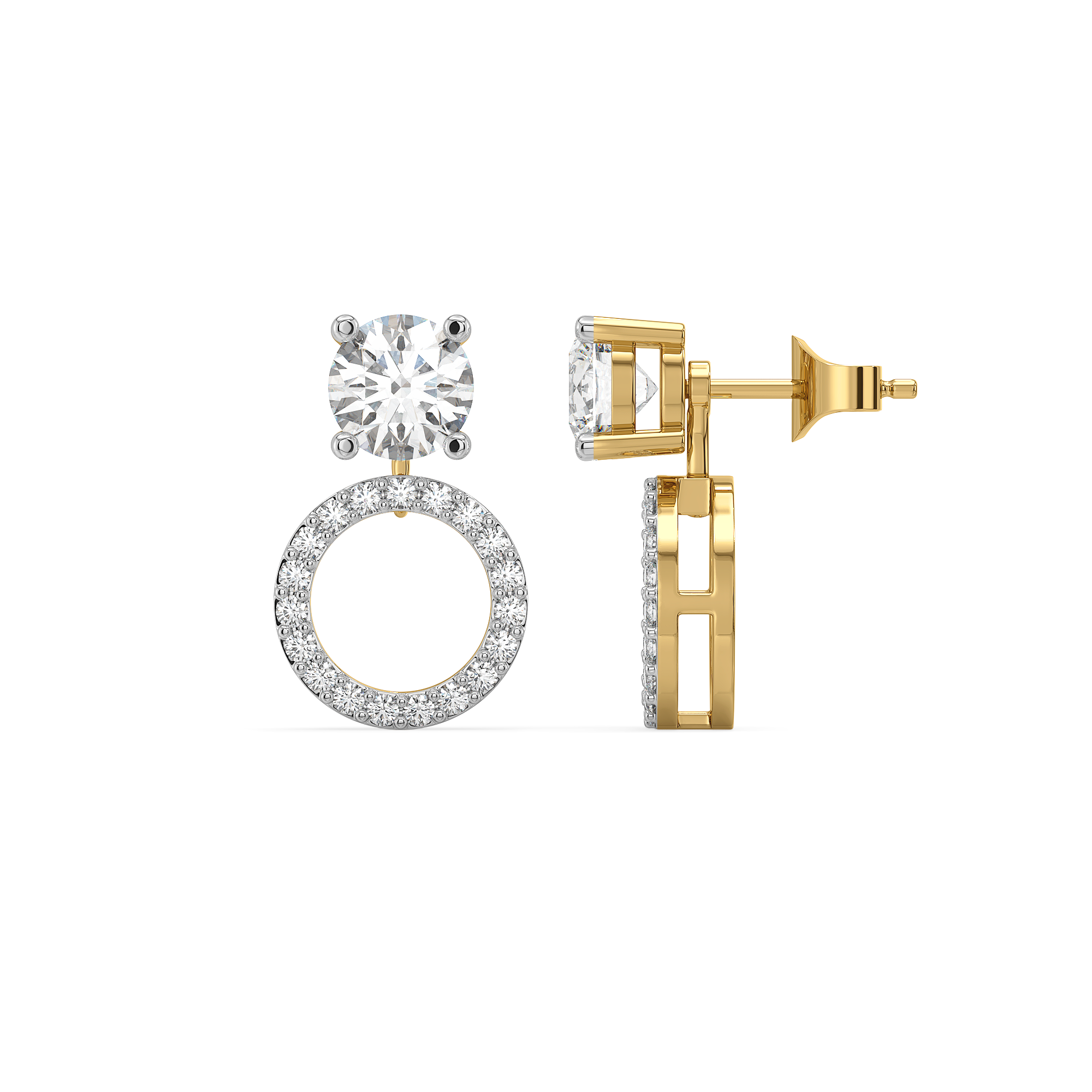 This 18kt Gold Vermeil stud for women is designed to dazzle in every form. At its core is a brilliant lab-grown solitaire diamond, radiant on its own, or paired with an additional halo for a touch of dramatic elegance. The halo can even transform into a delicate drop dangle, letting you wear the same piece in multiple striking ways.