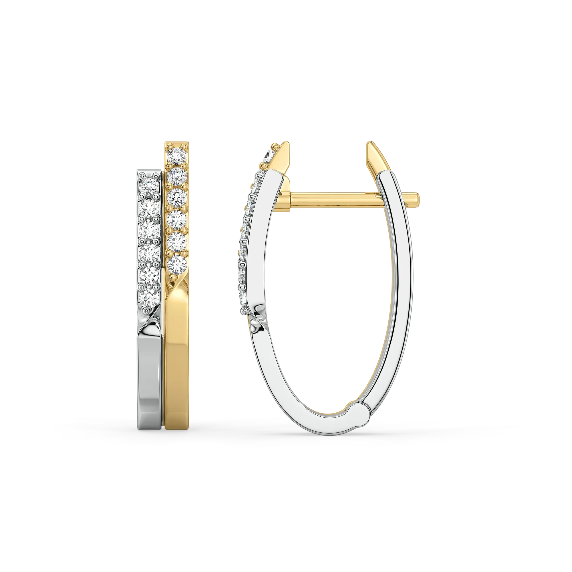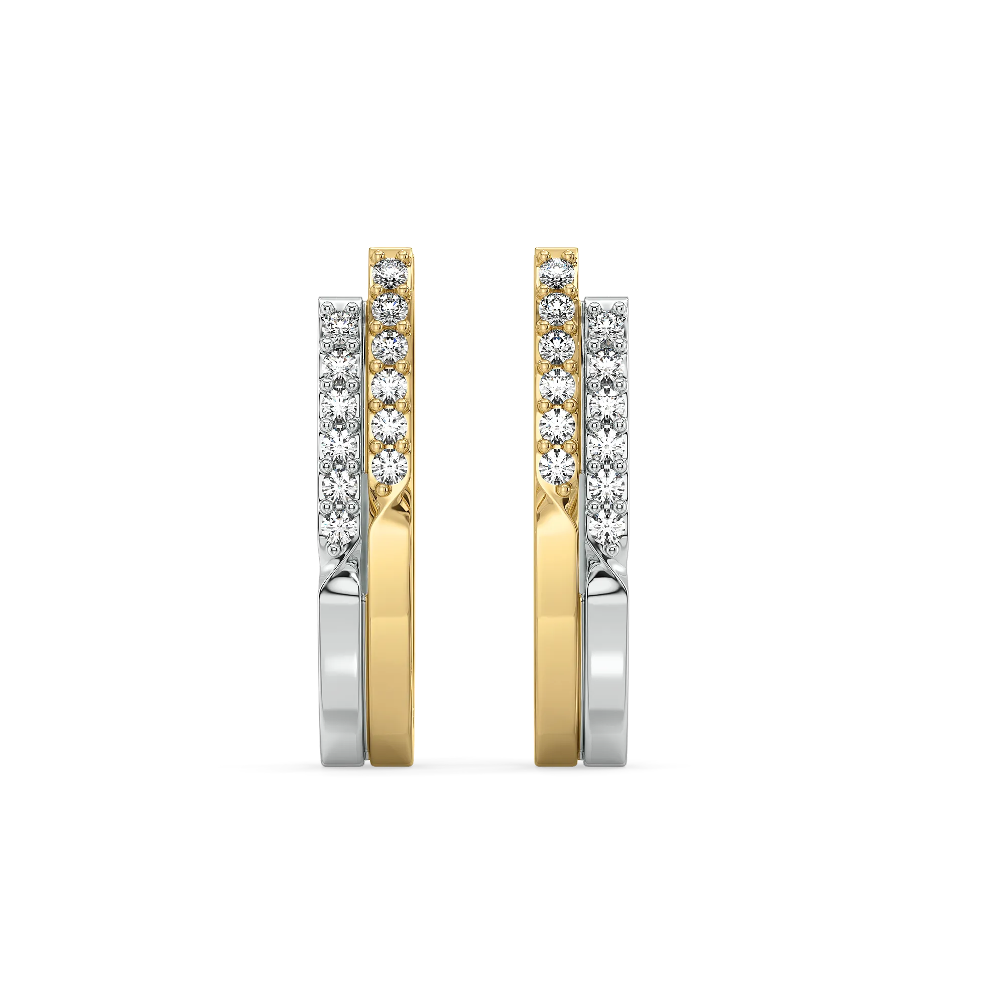 Dual by tone, one in soul — the Dual Flow Huggies feature alternating rows of yellow and white vermeil that wrap your ears in modern radiance. Their refined form and lab-grown diamond detailing make them perfect from boardroom to after-hours. With their balanced play of tones and textures, these huggies reflect contemporary femininity that’s both bold and harmonious.