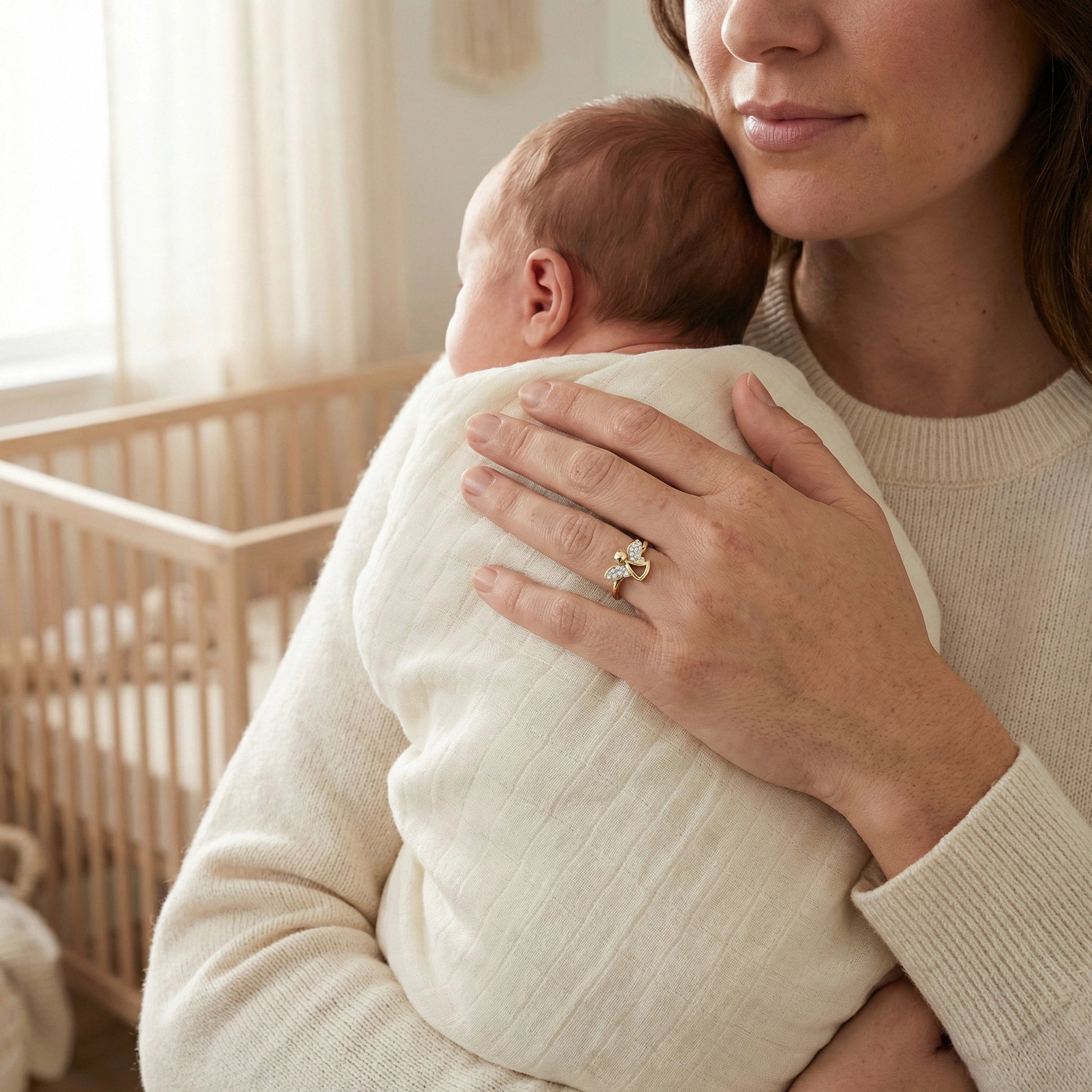 The Light Guardian Ring is crafted as a symbol of love that protects and inspires. Designed in 18K gold vermeil, it features an angel with diamond-studded wings — a reminder that every daughter carries a piece of her mother’s light wherever she goes. The delicate details shimmer with warmth, celebrating the gentle strength and guidance that shape her journey.