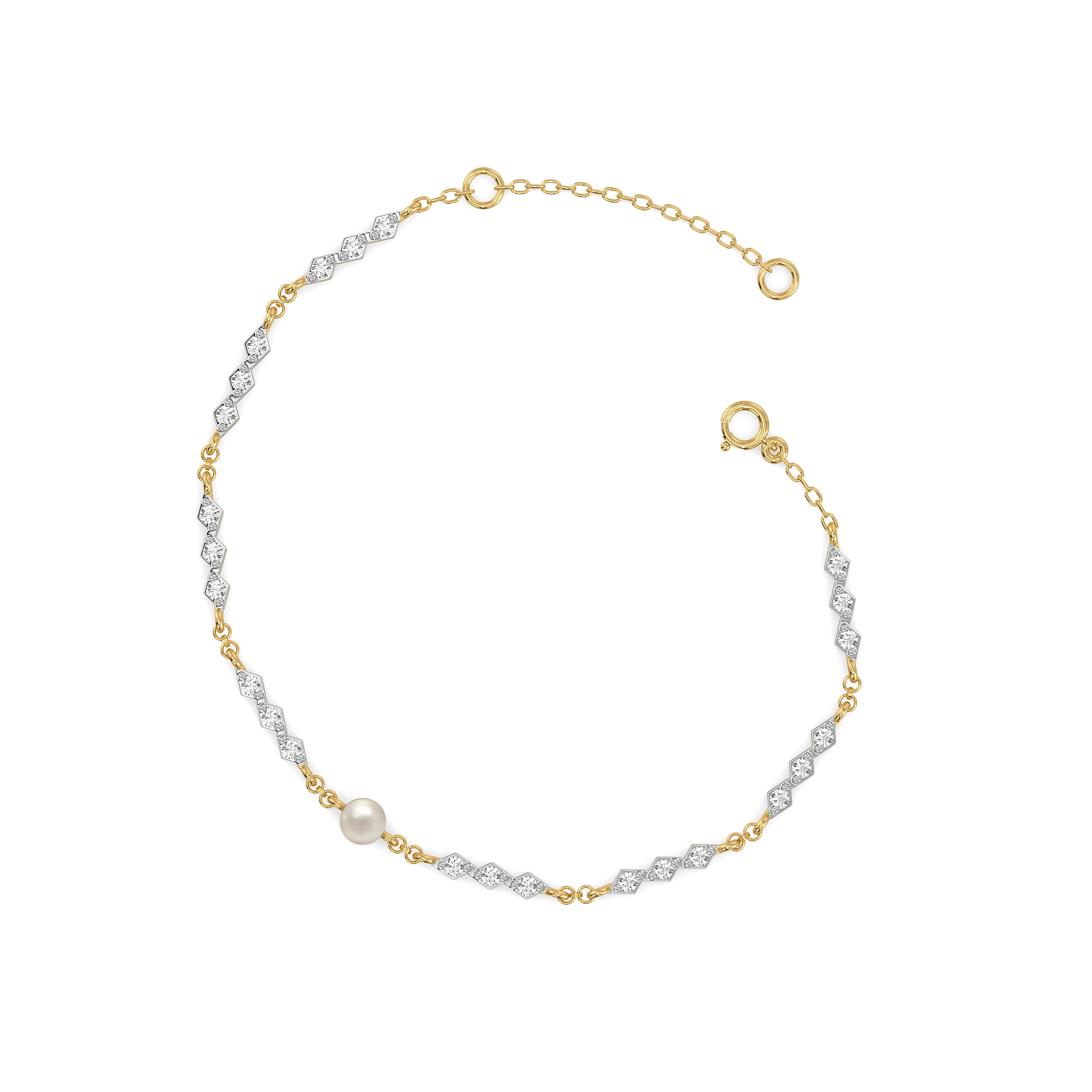 The Snow Kissed Pearl Bracelet for women captures the delicate charm of a winter snowflake. Lustrous pearls are accented with sparkling lab-grown diamonds in a snowflake-inspired design, all set in radiant 18kt Gold Vermeil. Each piece comes with SGL certification for authenticity and quality.