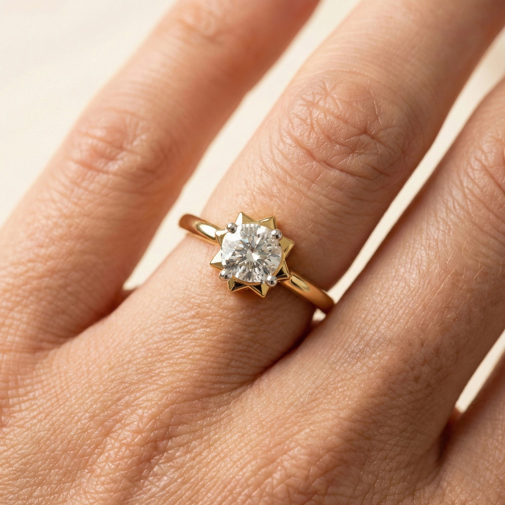 The Solitaire Core Ring for women celebrates the beauty of a solitaire framed with a bold, edgy silhouette. A luminous lab-grown diamond sits at the center, surrounded by a distinctive outer motif that adds depth and character. Crafted in 18kt Gold Vermeil and SGL certified, this ring is designed for women who like their elegance with an edge.