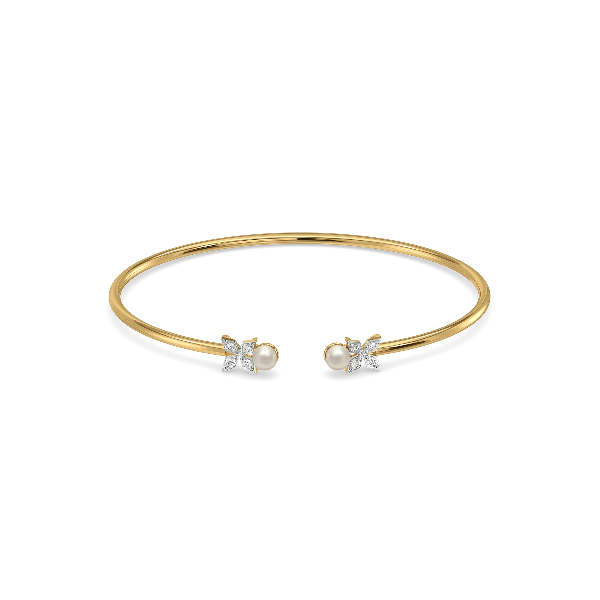 The Winter Pearls Bangle for women blends minimalist design with snowflake-inspired charm. Pearls and lab-grown diamonds set in 18kt Gold Vermeil create a refined, elegant piece, complete with SGL certification for authenticity.