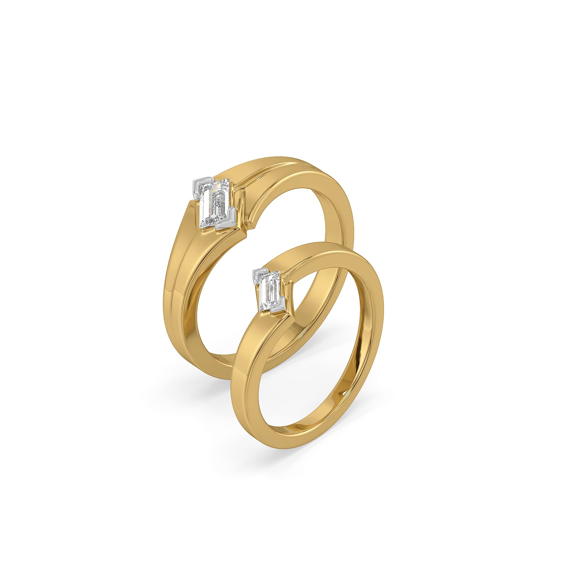 Created for men and women who appreciate structure and clarity, the Angle of Us Couple Bands feature an emerald-cut lab-grown diamond set within clean geometric detailing. The design reflects trust, precision, and modern love.