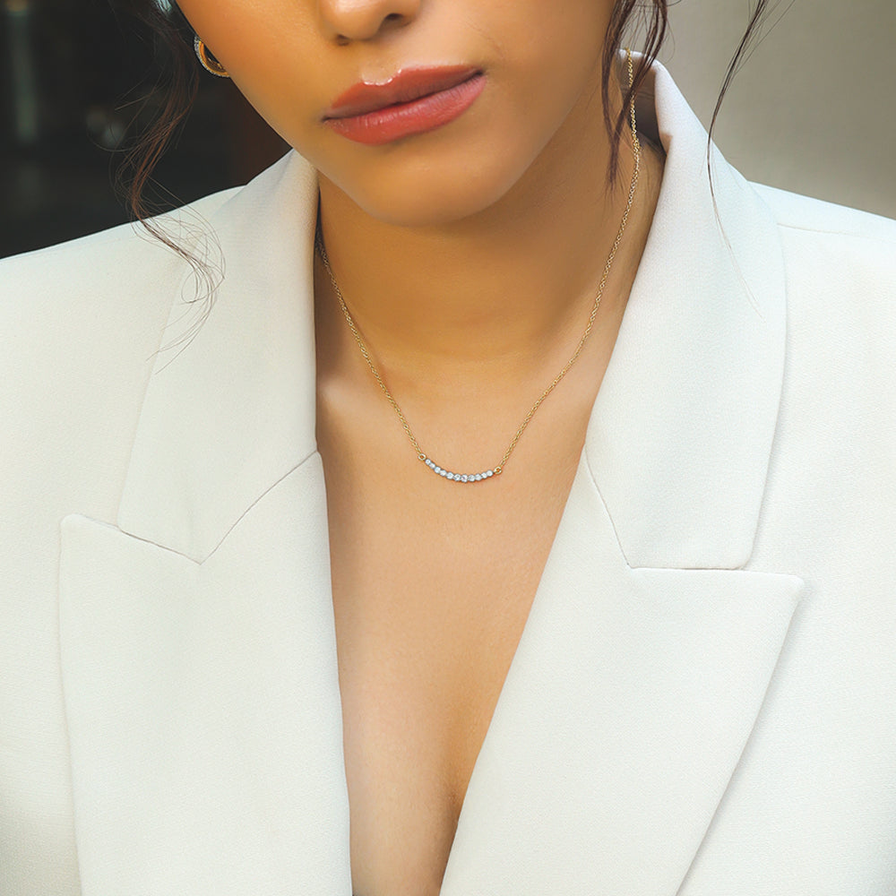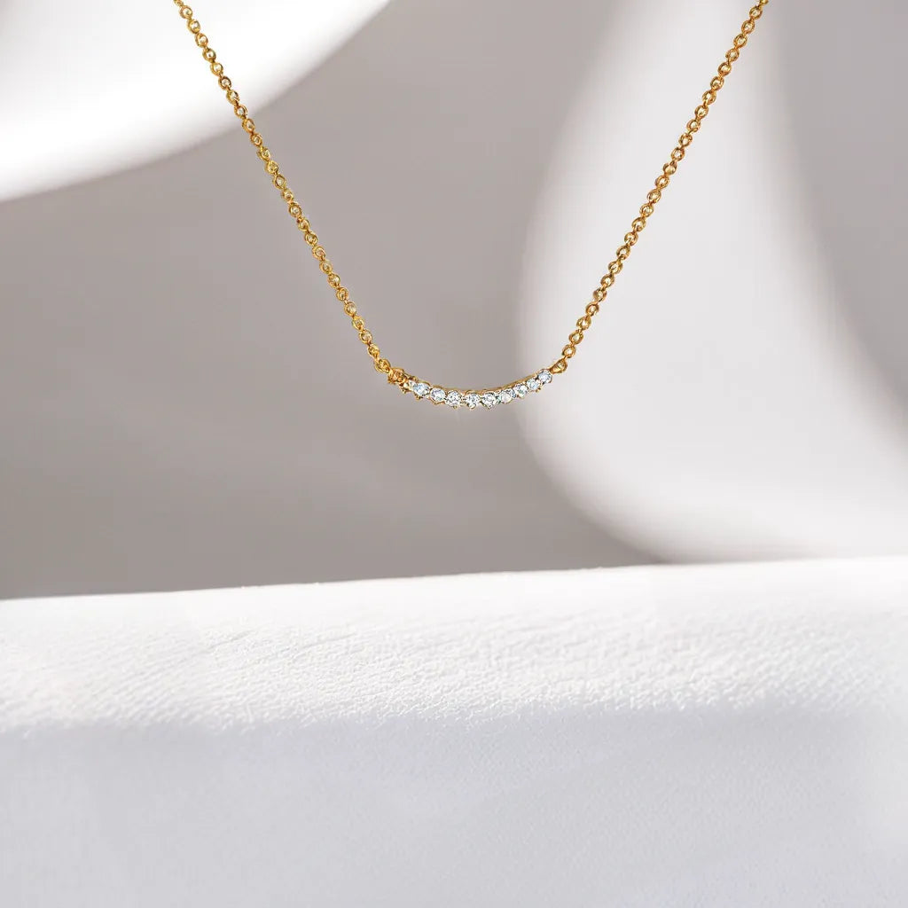 The "Dare to Sparkle" Necklet embodies the warmth and comfort of a loving embrace with its delicate, graceful design. Crafted in 18kt vermeil gold plating and adorned with ethically sourced lab-grown diamonds, this necklet adds a refined touch to any collection.