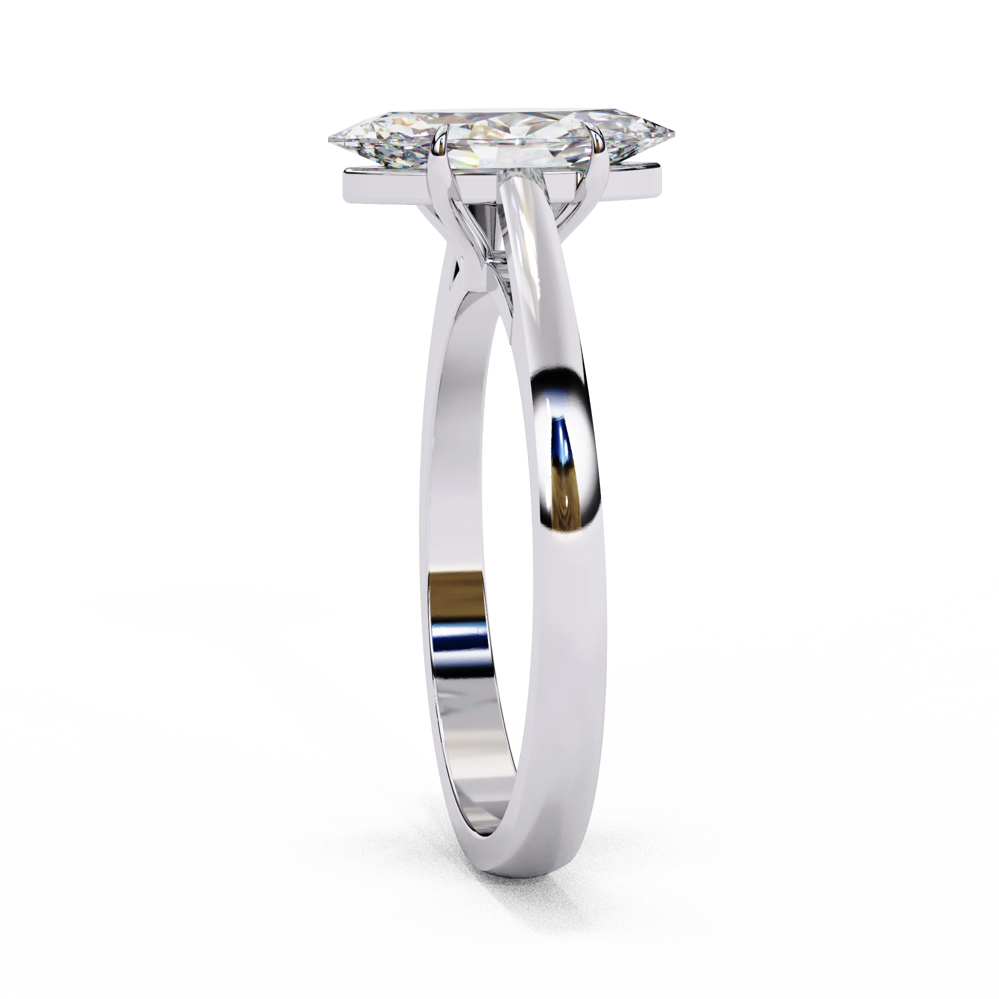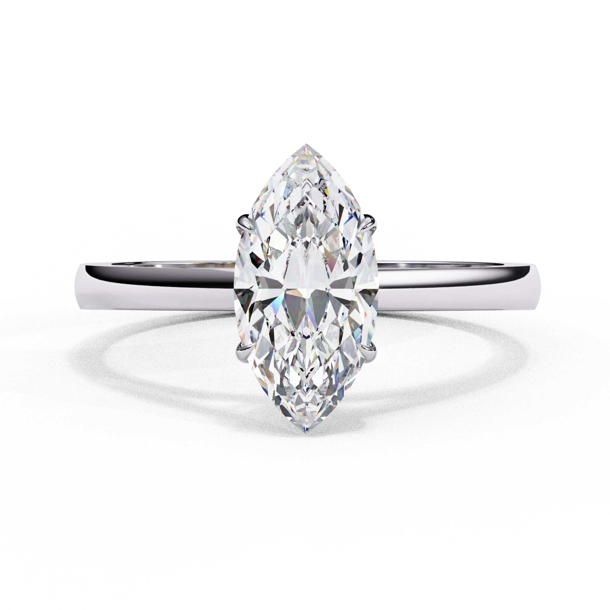 Inspired by the serene sparkle of frost-kissed mornings, the Frozen Marq Ring for women features a brilliant marquise-cut lab-grown diamond set in polished 14K white gold. Its elongated silhouette captures light from every angle, creating a bold yet elegant statement. Customizable in 18K or 9K white gold, it is BIS Hallmarked and SGL Certified, ensuring authenticity and lasting brilliance.