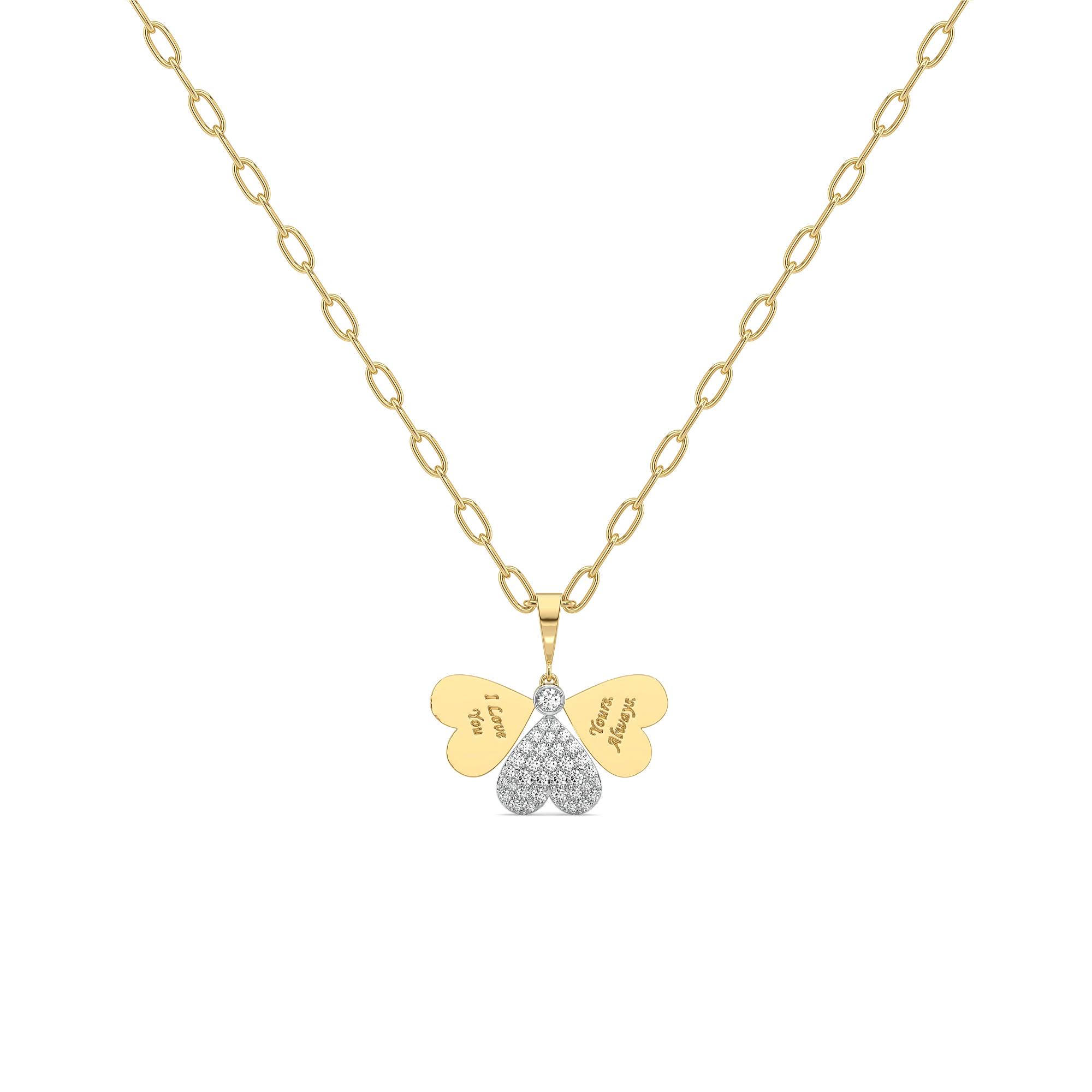 Crafted in 18kt Gold Vermeil, the Promise Within Necklace features a heart design formed with three delicate layers that gently open to reveal a hidden message within. Thoughtfully engraved with “I love you” and “Yours always”, the layered heart symbolises love that unfolds over time—deep, intentional, and everlasting. A subtle SGL certified lab grown diamond adds a soft glow, enhancing the emotion of the design without overpowering it.