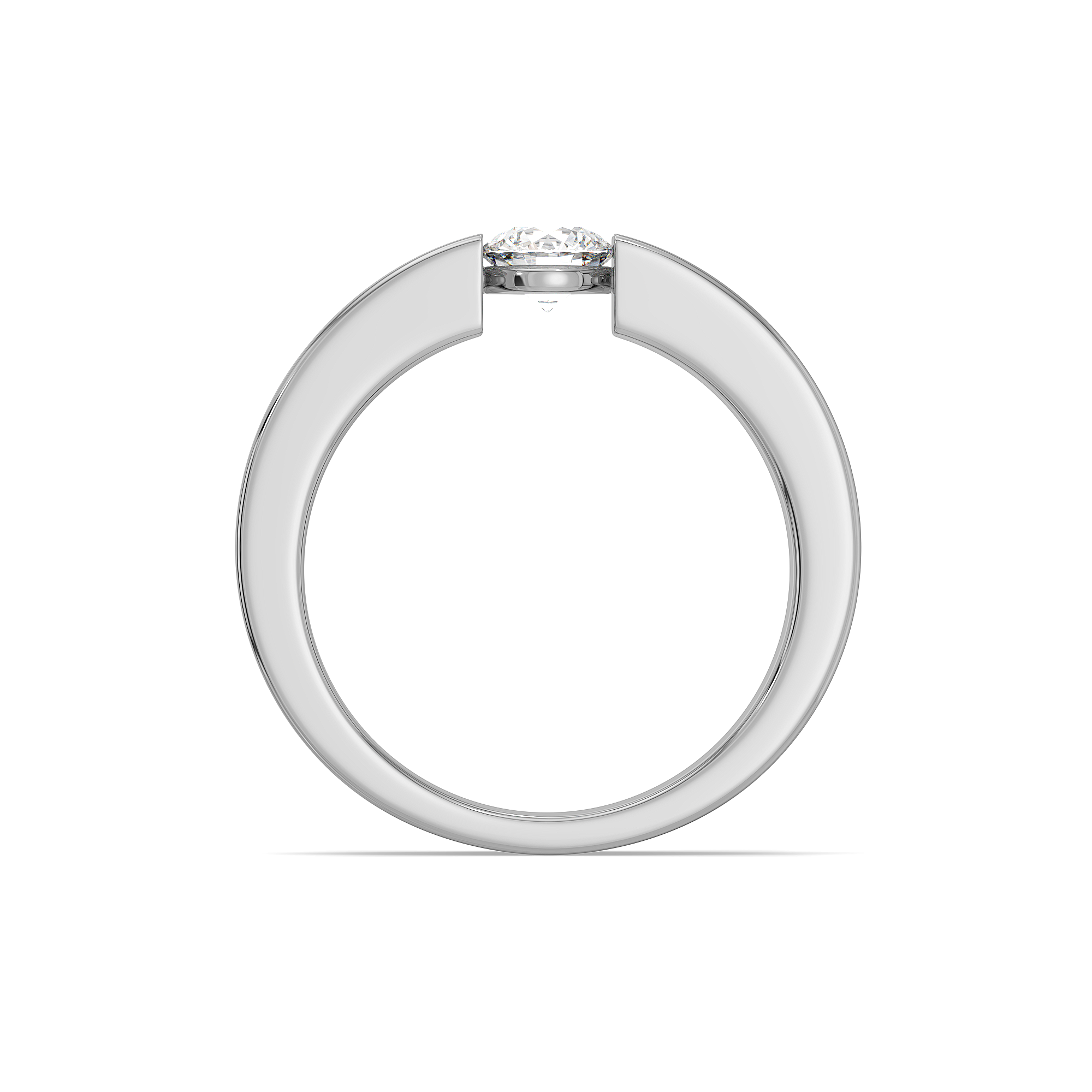 The Sol Band draws its strength from light itself. Crafted in sterling silver, it features a single lab-grown diamond suspended between open edges — a design that feels weightless yet commanding. The precision-cut diamond appears to float in perfect balance, reflecting brilliance from every angle, like sunlight caught in motion.